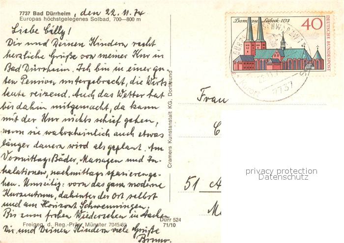 73684175 alte Postkarte Bad Duerrheim Fliegeraufnahme Solbad postalisch gelaufen Erhaltung siehe scans [LiesaD40] KatCode: 11110008326003