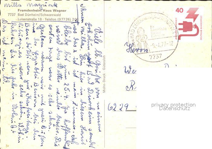72553181 alte Postkarte Bad Duerrheim Fremdenheim Haus Wagner postalisch gelaufen Erhaltung siehe scans [AntonD74] KatCode: 11110008326003