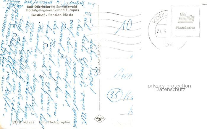73792450 alte Postkarte Bad Duerrheim Gasthof-Pension Roessle Aussenansicht postalisch gelaufen Erhaltung siehe scans [LiesaD40] KatCode: 11110008326003
