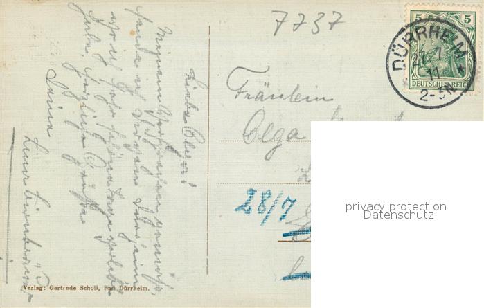43075779 alte Postkarte Bad Duerrheim Grossherzogl Landessolbad postalisch gelaufen Erhaltung siehe scans [FriedD77] KatCode: 11110008326003