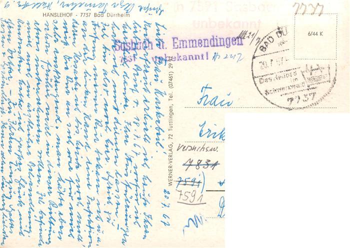 73926835 alte Postkarte Bad Duerrheim Haenslehof postalisch gelaufen Erhaltung siehe scans [FriedD77] KatCode: 11110008326003