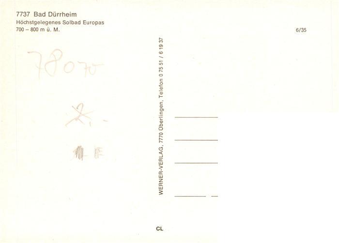 73945922 Bad Duerrheim Hoechstgelegenes Solbad Europas postalisch nicht gelaufen Fliegeraufnahme Erhaltung siehe scans [FriedD77] KatCode: 11110008326003