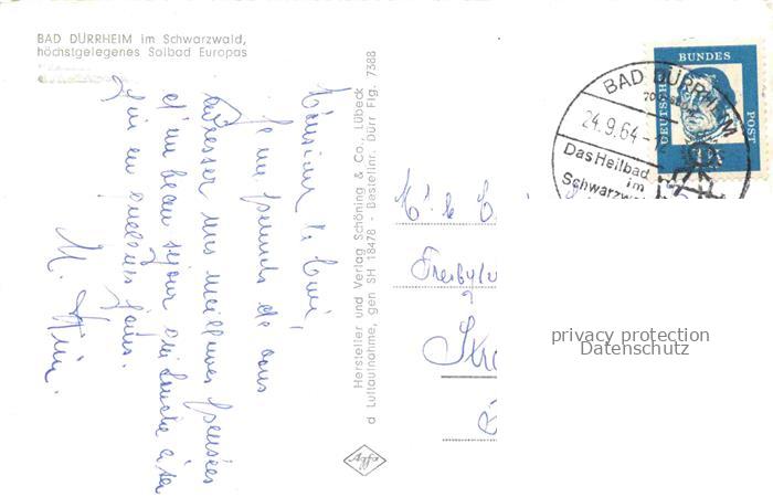 74005473 alte Postkarte Bad Duerrheim Hoechstgelegenes Solbad Europas postalisch gelaufen Fliegeraufnahme Erhaltung siehe scans [FriedD77] KatCode: 11110008326003