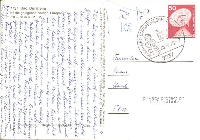 alte Postkarte Bad Duerrheim Hoechstgelegenes Solbad Europas Fliegeraufnahme postalisch gelaufen Erhaltung siehe scans