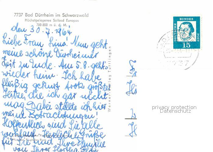 72815424 alte Postkarte Bad Duerrheim Hoechstgelegenes Solbad Europas im Schwarzwald Fliegeraufnahme postalisch gelaufen Erhaltung siehe scans [FriedD77] KatCode: 11110008326003