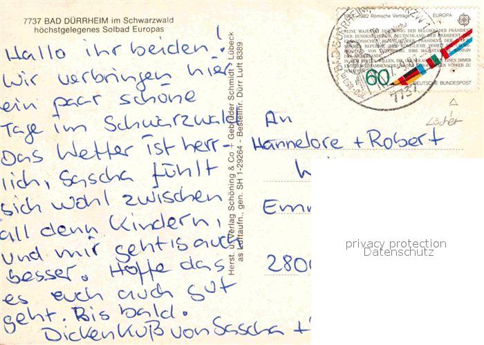 72751709 alte Postkarte Bad Duerrheim Hoechstgelegenes Solbad Europas im Schwarzwald Fliegeraufnahme postalisch gelaufen Erhaltung siehe scans [FriedD77] KatCode: 11110008326003