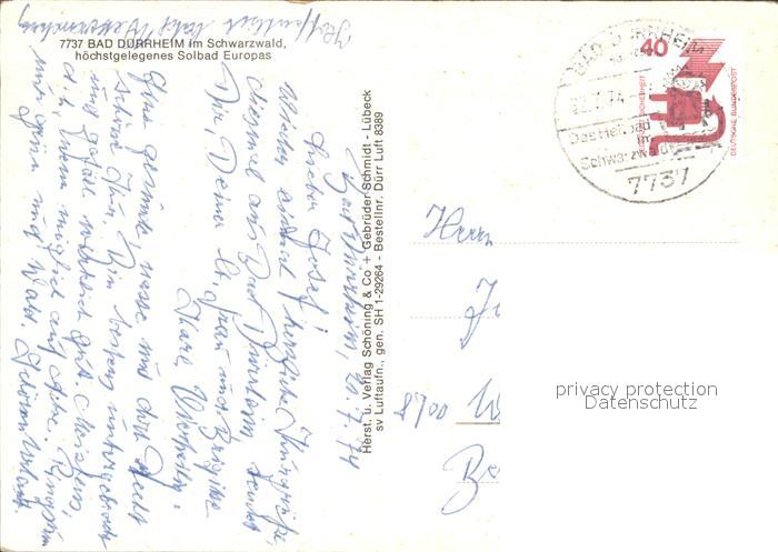 72314251 alte Postkarte Bad Duerrheim Hoechstgelegenes Solbad Europas im Schwarzwald Fliegeraufnahme postalisch gelaufen Erhaltung siehe scans KatCode: 11110008326003