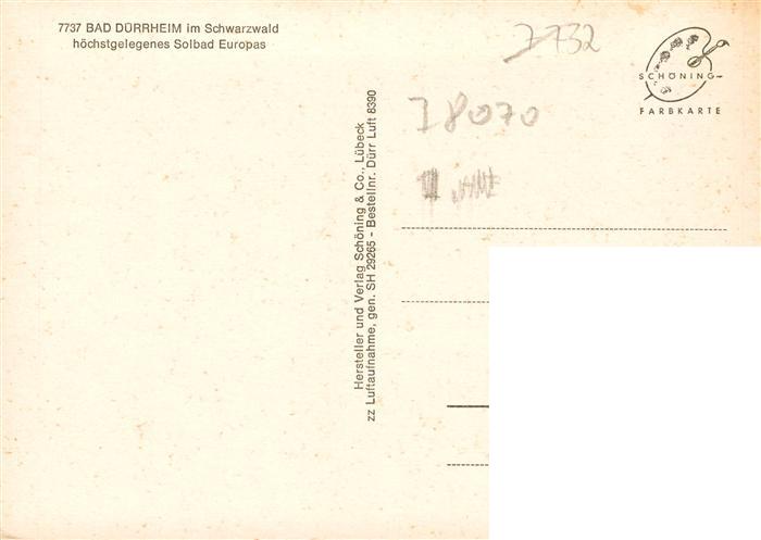 73945923 Bad Duerrheim Hoechstgelegenes Solbad Europas postalisch nicht gelaufen Fliegeraufnahme Erhaltung siehe scans [FriedD77] KatCode: 11110008326003