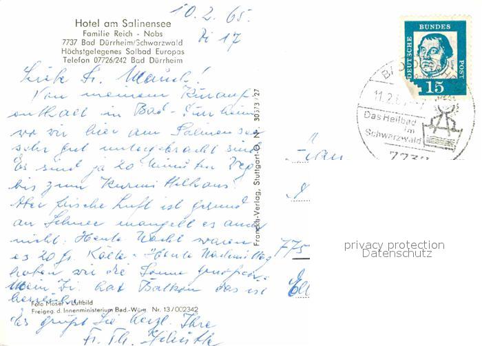 72829828 alte Postkarte Bad Duerrheim Hotel am Salinensee Fliegeraufnahme postalisch gelaufen Erhaltung siehe scans [LiesaD40] KatCode: 11110008326003