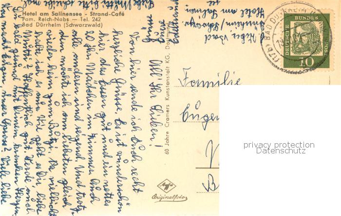 73770149 alte Postkarte Bad Duerrheim Hotel am Salinensee Strandcafe postalisch gelaufen Erhaltung siehe scans [WerneD78] KatCode: 11110008326003