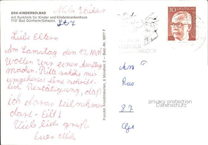 72464511 alte Postkarte Bad Duerrheim Kinderheilstaette Kurklinik Speisesaal Spielplatz Hallenbad postalisch gelaufen Erhaltung siehe scans KatCode: 11110008326003