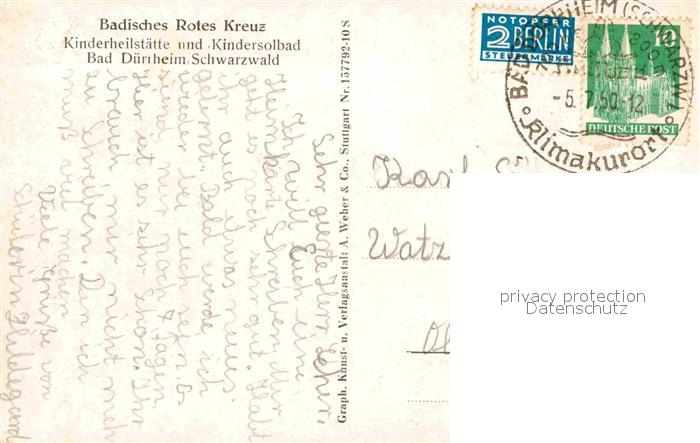 72771263 alte Postkarte Bad Duerrheim Kinderheilstaette postalisch gelaufen Erhaltung siehe scans [AndreD76] KatCode: 11110008326003