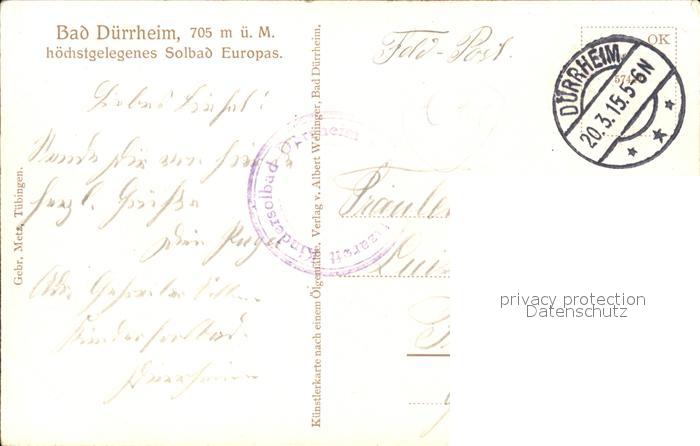31730901 alte Postkarte Bad Duerrheim Kuenstlerkarte postalisch gelaufen Feldpost Erhaltung siehe scans KatCode: 11110008326003