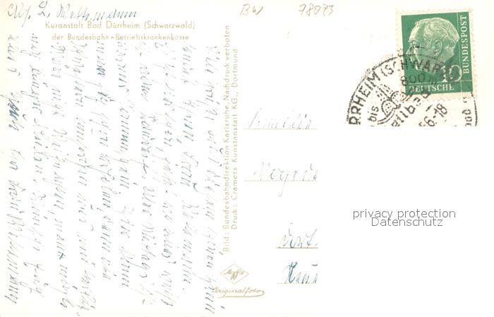 73653397 alte Postkarte Bad Duerrheim Kuranstalt der Bundesbahn Betriebskrankenkasse postalisch gelaufen Erhaltung siehe scans [WerneD78] KatCode: 11110008326003