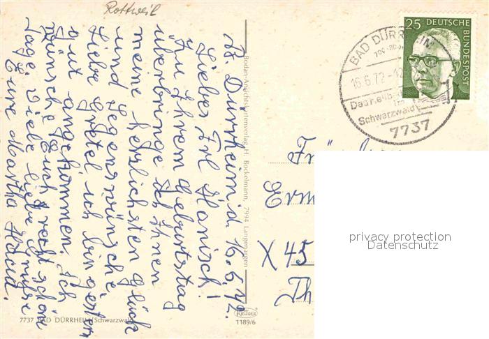 72742256 alte Postkarte Bad Duerrheim Kurhaus Kurpark Schwanenteich Kurmittelhaus Sanatorium Parkhotel Kreuz postalisch gelaufen Erhaltung siehe scans [FriedD77] KatCode: 11110008326003