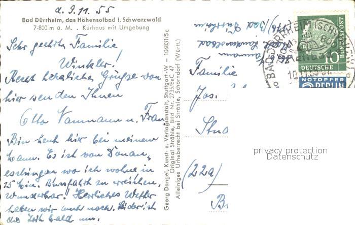 72073770 alte Postkarte Bad Duerrheim Kurhaus mit Umgebung Hoehensolbad Schwarzwald Fliegeraufnahme postalisch gelaufen Erhaltung siehe scans KatCode: 11110008326003