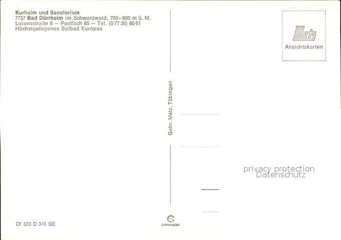 72225856 Bad Duerrheim Kurheim Sanatorium hoechstgelegenes Solbad Europas postalisch nicht gelaufen Erhaltung siehe scans KatCode: 11110008326003