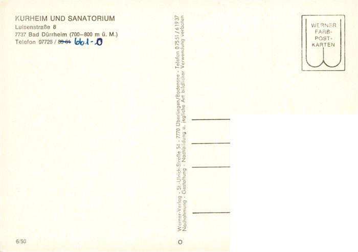 73927307 Bad Duerrheim Kurheim und Sanatorium postalisch nicht gelaufen Erhaltung siehe scans [FriedD77] KatCode: 11110008326003