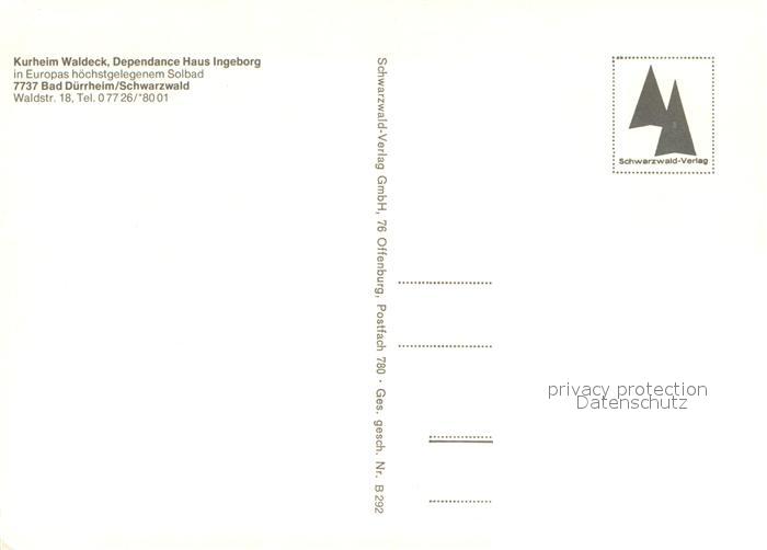 73680029 Bad Duerrheim Kurheim Waldeck Haus Ingeborg postalisch nicht gelaufen Erhaltung siehe scans [LiesaD40] KatCode: 11110008326003