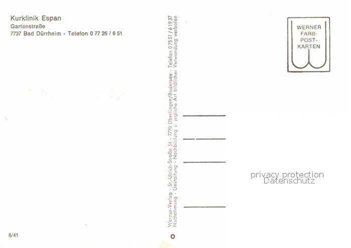 72693914 Bad Duerrheim Kurklinik Espan postalisch nicht gelaufen Erhaltung siehe scans [NatalD47] KatCode: 11110008326003