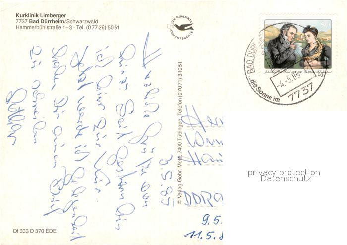 73711609 alte Postkarte Bad Duerrheim Kurklinik Limberger Teilansichten postalisch gelaufen Erhaltung siehe scans [LiesaD40] KatCode: 11110008326003