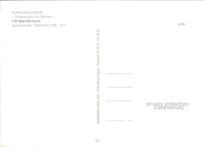 71999535 Bad Duerrheim Kurklinik Parksanatorium Benner postalisch nicht gelaufen Erhaltung siehe scans KatCode: 11110008326003