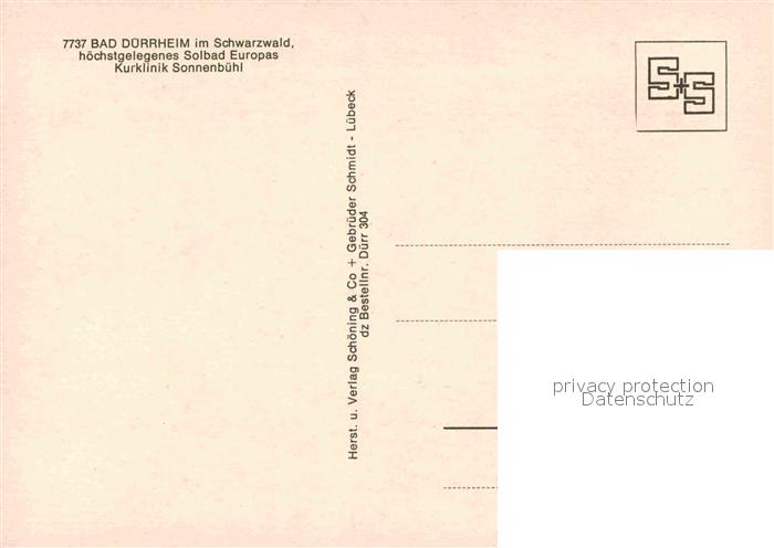 72893288 Bad Duerrheim Kurklinik Sonnenbuehl postalisch nicht gelaufen Erhaltung siehe scans [AndreD76] KatCode: 11110008326003