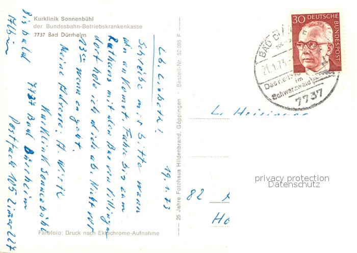 73167882 alte Postkarte Bad Duerrheim Kurklinik Sonnenbuehl postalisch gelaufen Erhaltung siehe scans [LiesaD40] KatCode: 11110008326003