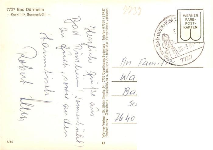 73927341 alte Postkarte Bad Duerrheim Kurklinik Sonnenbuehl postalisch gelaufen Erhaltung siehe scans [FriedD77] KatCode: 11110008326003