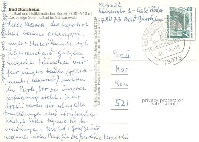 73720642 alte Postkarte Bad Duerrheim Kurort Sole-Heilbad im Schwarzwald postalisch gelaufen Fliegeraufnahme Erhaltung siehe scans [FriedD77] KatCode: 11110008326003