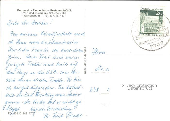 72493319 alte Postkarte Bad Duerrheim Kurpension Tannenhof postalisch gelaufen Erhaltung siehe scans KatCode: 11110008326003