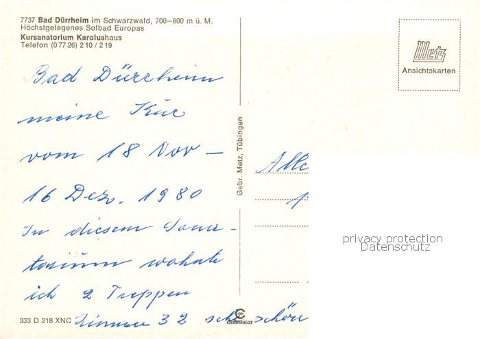 73788475 Bad Duerrheim Kursanatorium Karolushaus postalisch nicht gelaufen Erhaltung siehe scans [WerneD78] KatCode: 11110008326003