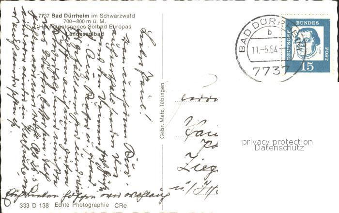 72062822 alte Postkarte Bad Duerrheim Landessolbad Hoechstgelegenes Solbad Europas postalisch gelaufen Erhaltung siehe scans KatCode: 11110008326003