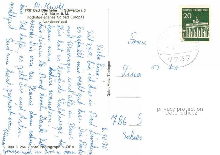 72790744 alte Postkarte Bad Duerrheim Landessolbad postalisch gelaufen Erhaltung siehe scans [AndreD76] KatCode: 11110008326003
