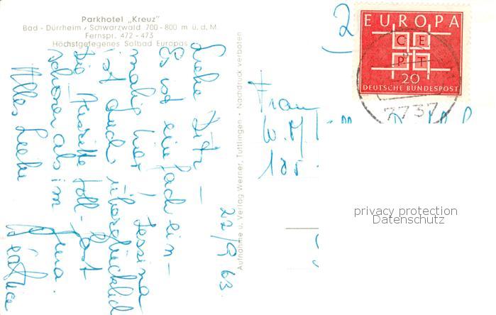 73830077 alte Postkarte Bad Duerrheim Parkhotel Kreuz postalisch gelaufen Erhaltung siehe scans [FriedD77] KatCode: 11110008326003