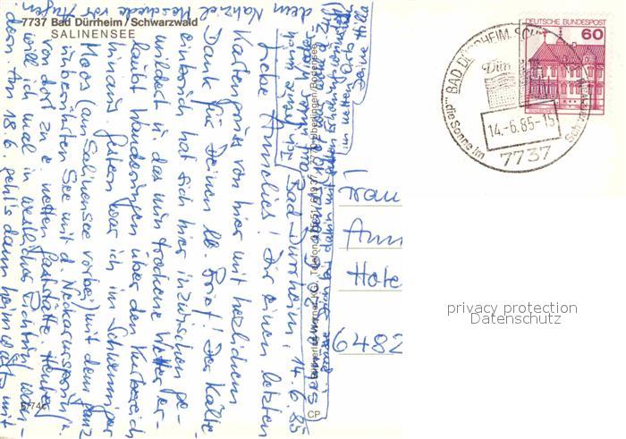 72855299 alte Postkarte Bad Duerrheim Salinensee postalisch gelaufen Erhaltung siehe scans [WerneD78] KatCode: 11110008326003