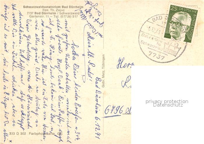 72935280 alte Postkarte Bad Duerrheim Schwarzwaldsanatorim Bad-D?rrheim postalisch gelaufen Erhaltung siehe scans [LiesaD40] KatCode: 11110008326003