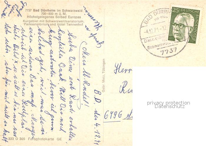 72935281 alte Postkarte Bad Duerrheim Solbad Kurgebiet Schwarzwaldsanatorium im Winter postalisch gelaufen Erhaltung siehe scans [LiesaD40] KatCode: 11110008326003