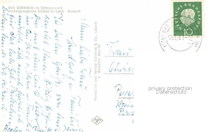 72630125 alte Postkarte Bad Duerrheim Solbad Kurpark postalisch gelaufen Erhaltung siehe scans [LiesaD40] KatCode: 11110008326003
