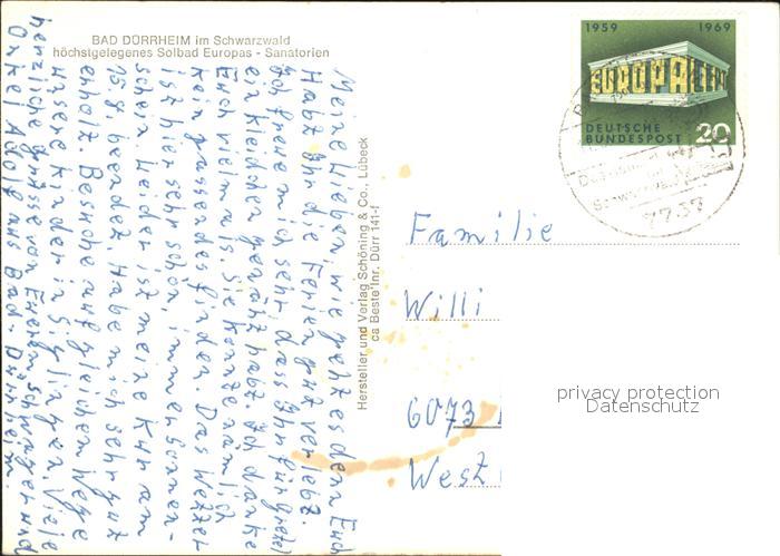 72309017 alte Postkarte Bad Duerrheim Solbad Sanatorien postalisch gelaufen Erhaltung siehe scans KatCode: 11110008326003