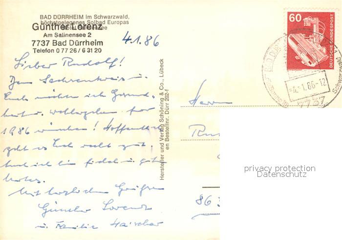 73721032 alte Postkarte Bad Duerrheim Solbad postalisch gelaufen Erhaltung siehe scans [WerneD78] KatCode: 11110008326003