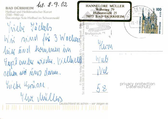 72717642 alte Postkarte Bad Duerrheim Sole Heilbad Heilklimatischer Kurort im Schwarzwald postalisch gelaufen Erhaltung siehe scans [FriedD77] KatCode: 11110008326003
