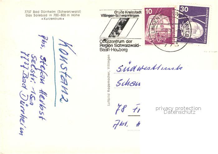 73336658 alte Postkarte Bad Duerrheim Solebad Kurzentrum Fliegeraufnahme postalisch gelaufen Erhaltung siehe scans [WerneD78] KatCode: 11110008326003