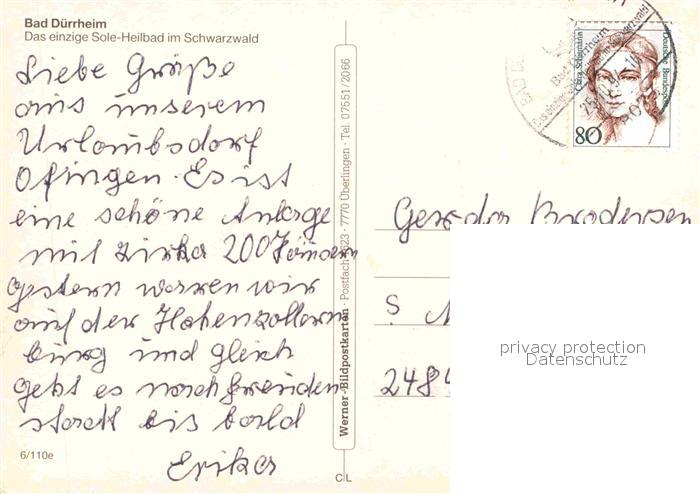 72716875 alte Postkarte Bad Duerrheim Solemar Thermalbad postalisch gelaufen Erhaltung siehe scans [FriedD77] KatCode: 11110008326003