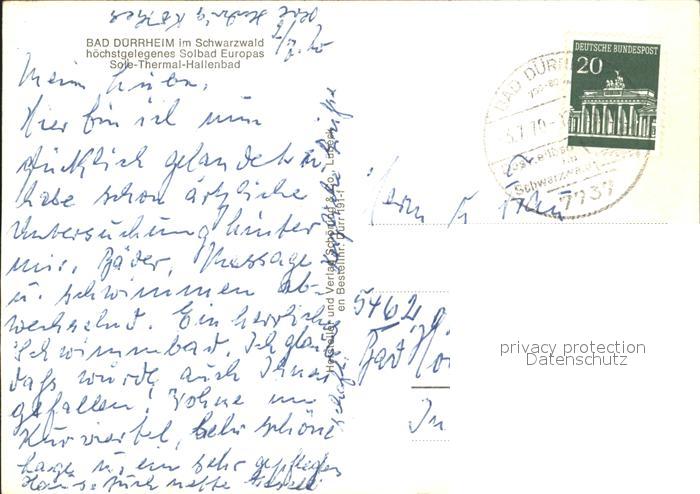 72259446 alte Postkarte Bad Duerrheim Thermalbad postalisch gelaufen Erhaltung siehe scans KatCode: 11110008326003