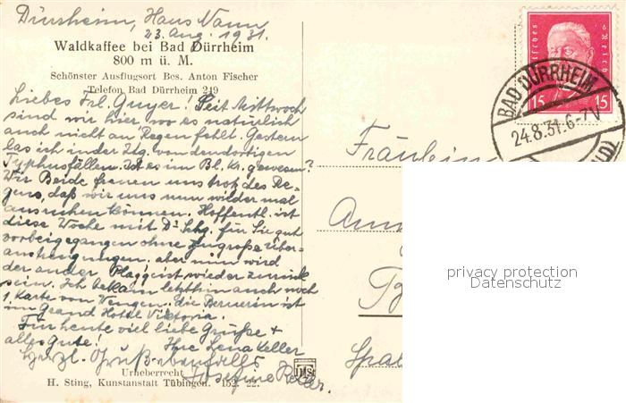 32625857 alte Postkarte Bad Duerrheim WaldCafe postalisch gelaufen Erhaltung siehe scans [AndreD76] KatCode: 11110008326003