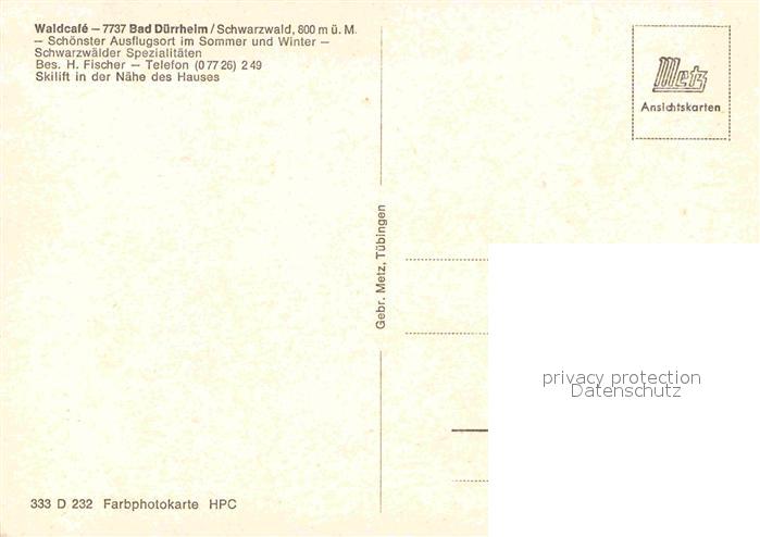 72896151 Bad Duerrheim WaldCafe postalisch nicht gelaufen Erhaltung siehe scans [AndreD76] KatCode: 11110008326003