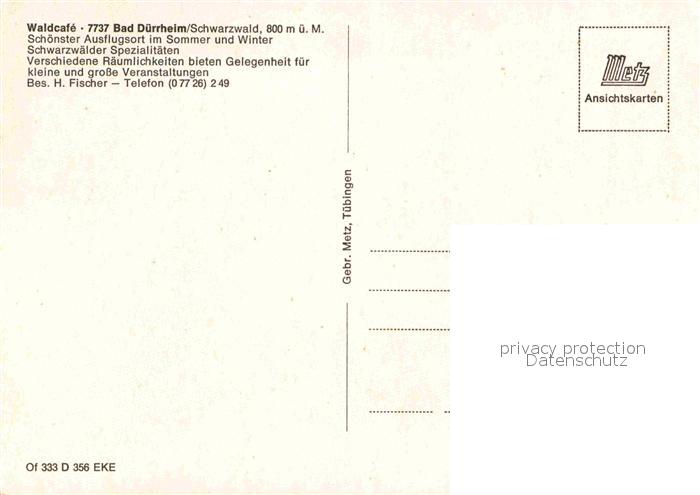 72893304 Bad Duerrheim WaldCafe postalisch nicht gelaufen Erhaltung siehe scans [AndreD76] KatCode: 11110008326003