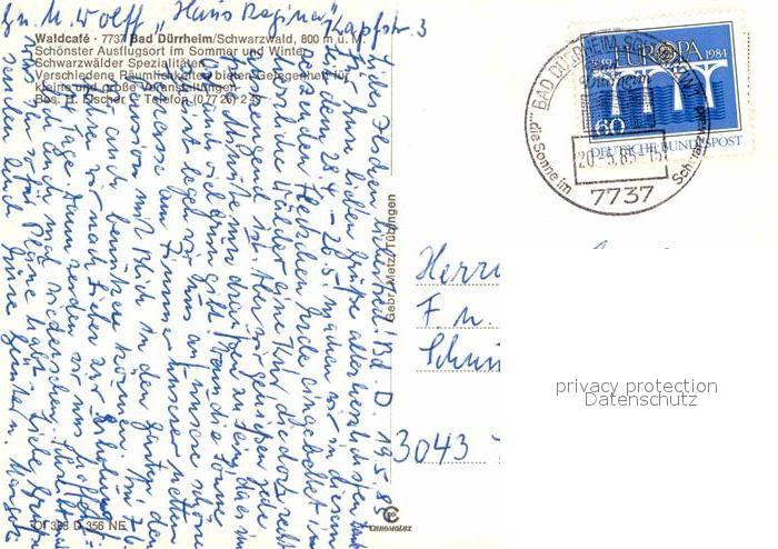 72681287 alte Postkarte Bad Duerrheim Waldcafe postalisch gelaufen Erhaltung siehe scans [WerneD78] KatCode: 11110008326003