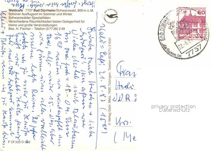 72891802 alte Postkarte Bad Duerrheim WaldCafe Kuehe postalisch gelaufen Erhaltung siehe scans [LiesaD40] KatCode: 11110008326003